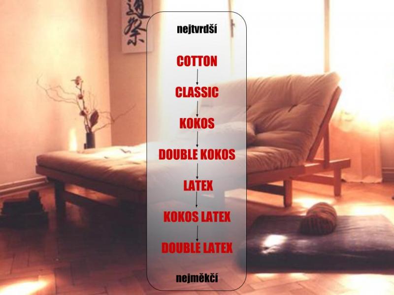 přizpůsobí se těluTento luxusní futon je vysoce pružný a dobře přizpůsobí anatomii vašeho těla. Díky vysokému obsahu vlny v zimě Futon Latex hřeje a v létě chladí. Kadeřené vlněné vlákno vytváří více místa pro proudění vzduchu, a proto se absorbovaná vlhkost velmi rychle vypařuje. Vhodný na všechny typy rámů, ZEJMÉNA TY ROZKLÁDACÍ. Obsahuje mnoho vrstev zhutněného bavlněného rouna a vlnu s latexovou deskou (kaučuk) uprostřed. Potah 100% bavlněné plátno.